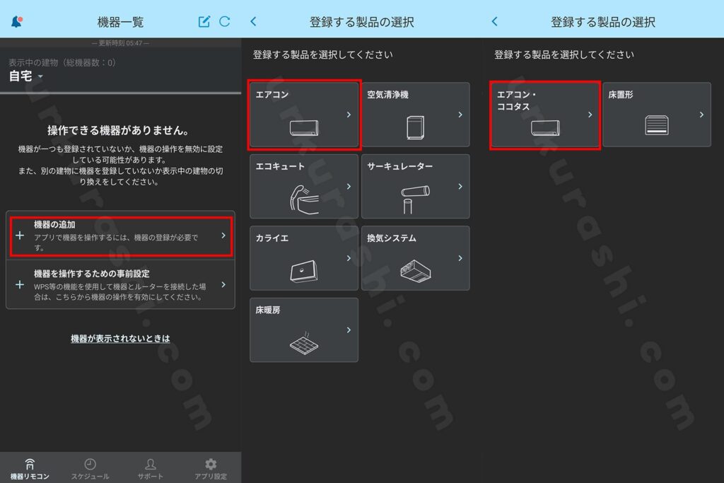 外出先からの操作だけを考えるとSwitchBotなど他のIoTデバイス経由での操作も可能ですが、動作中の温度設定など本体側の現在の情報を取得できるわけではないため、メーカー純正アプリのある機種を優先しました。