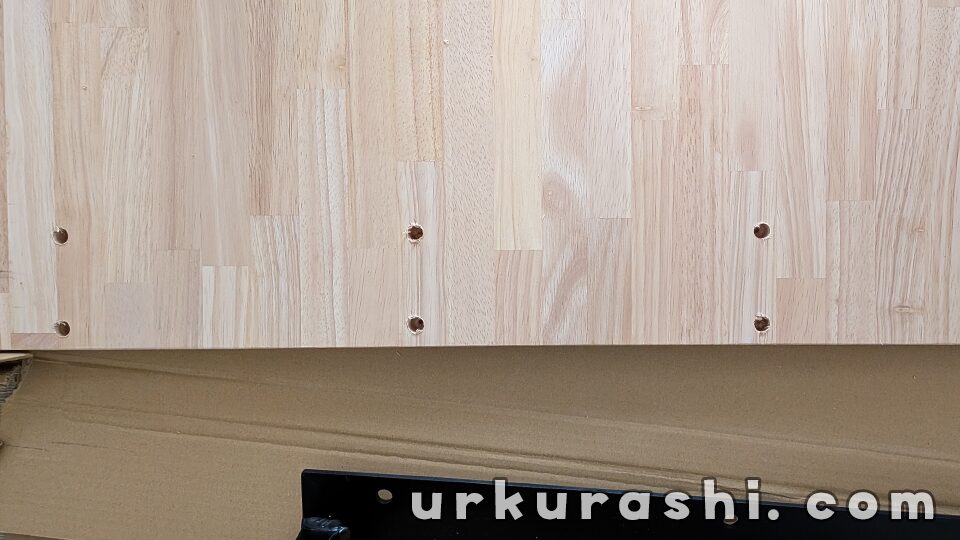 もう片方の脚も、同じ手順で天板に据え付けます。