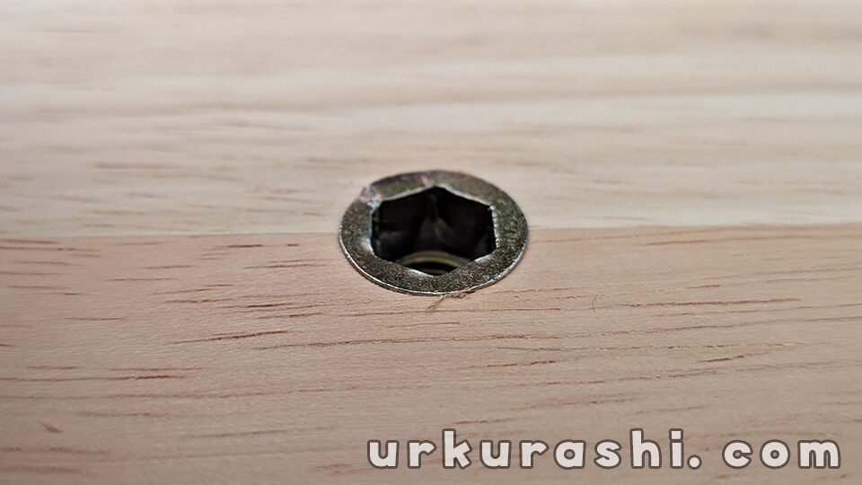 下穴に六角レンチを使って鬼目ナットをねじ込んでいきます。