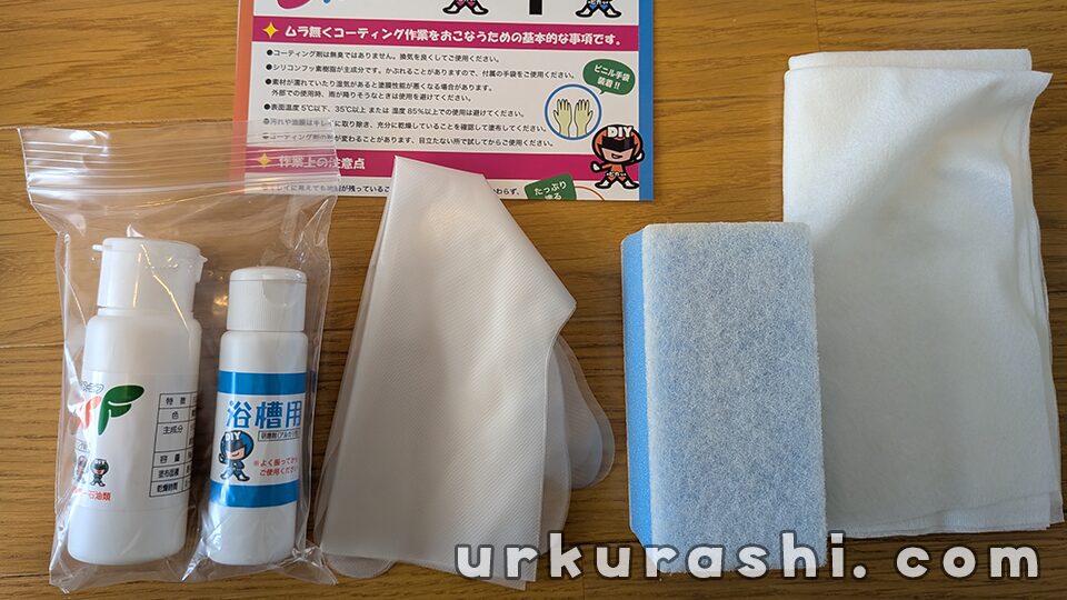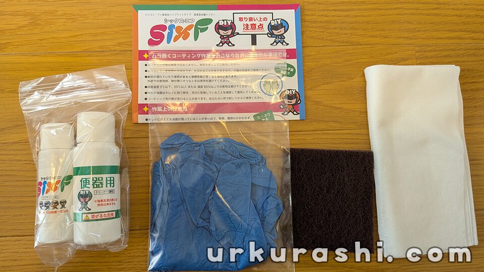 場所ごとの専用パッケージが販売されており、今回はキッチン用(ステンレスシンク用)、トイレ用、浴室用を購入しました。洗面所については専用品を購入せず、トイレ用の余りを活用しています。