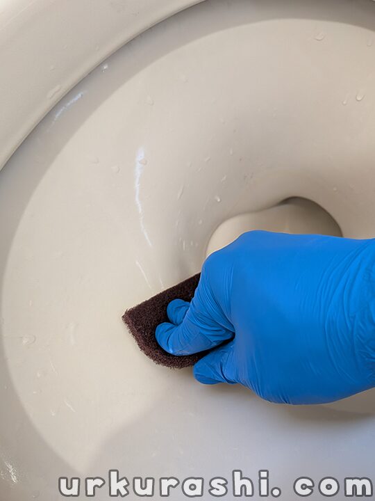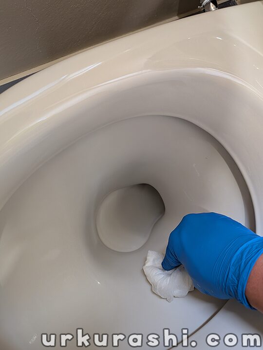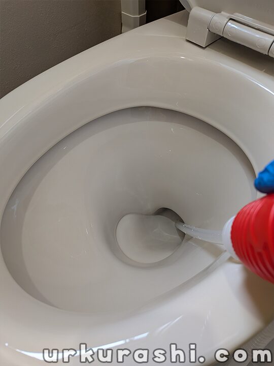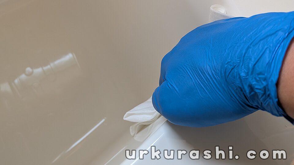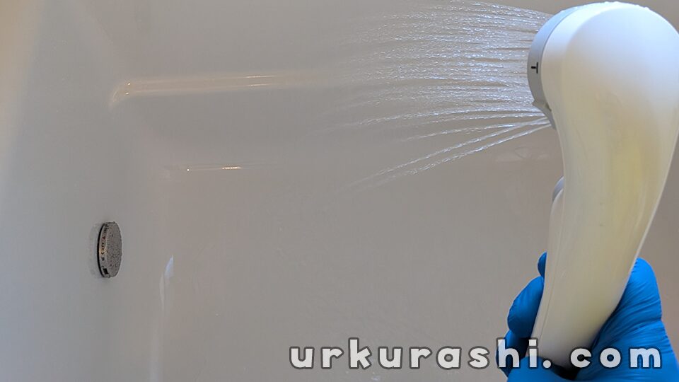 たっぷりの水でクリーナーを洗い流し、手で触ってぬめりが残っていないか確認しましょう。