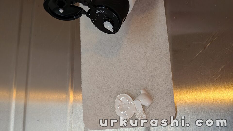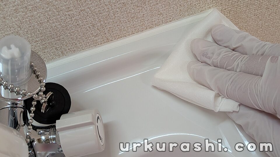 洗面台用のパッケージは購入せず、トイレ用の余りを使用しました。洗面台が便器と同じ陶器製であったことが理由です。