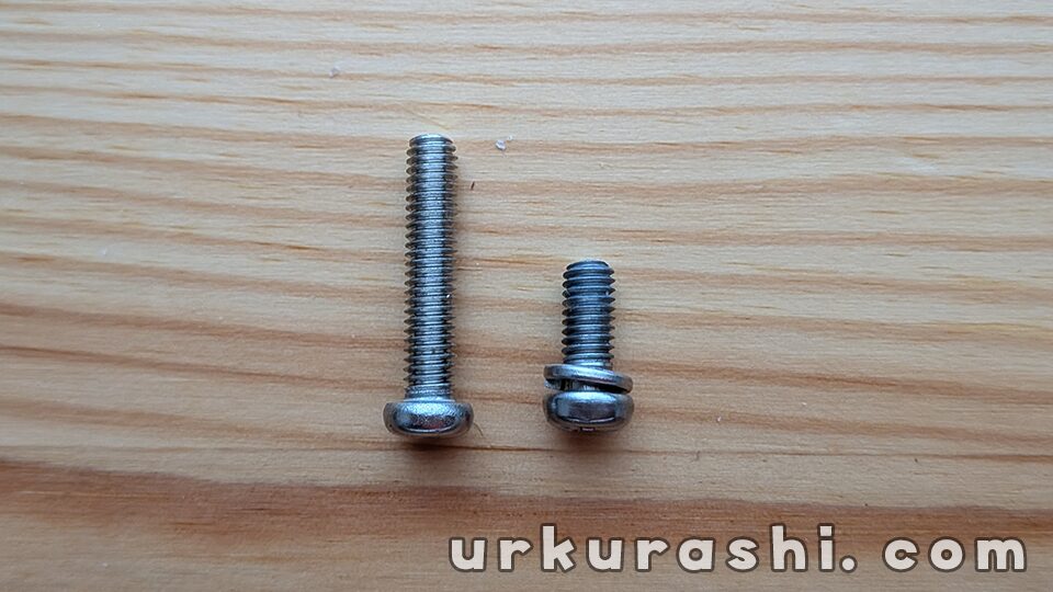 そのため、少し長めの別のネジに交換して固定します。