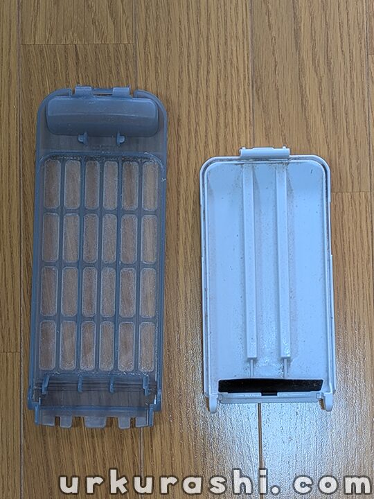 本機種の糸くずフィルターはプラスチック側にゴミが溜まる構造になっており簡単に取り除くことができて使いやすいです。