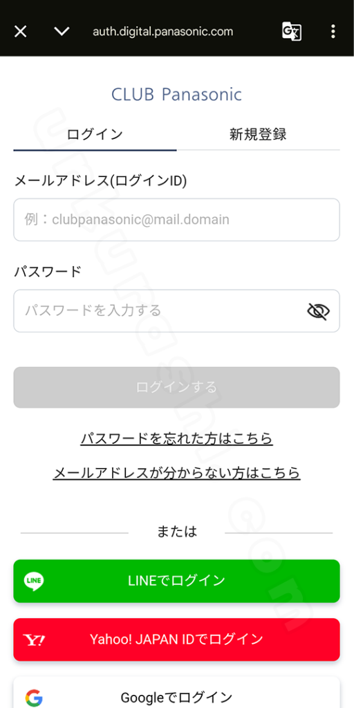 CLUB Panasonicのアカウントまたは外部サービスアカウントでアプリにログインします。