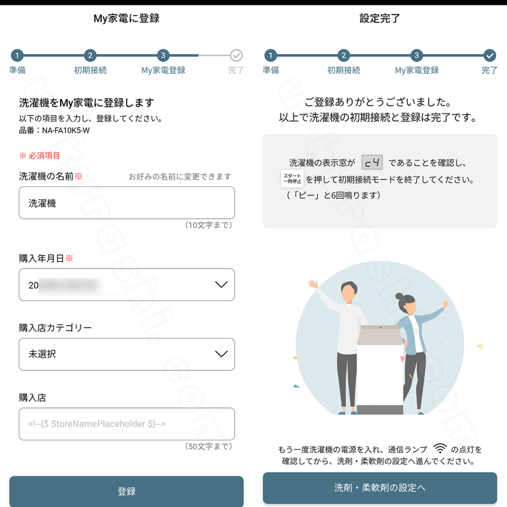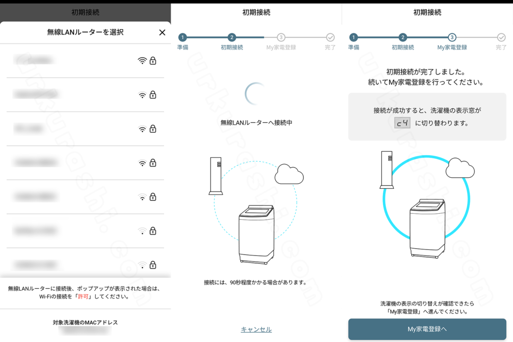 完了画面が出たら洗濯機の表示窓が「c4」であることを確認し「スタート・一時停止」を押して初期接続モードを終わらせます。