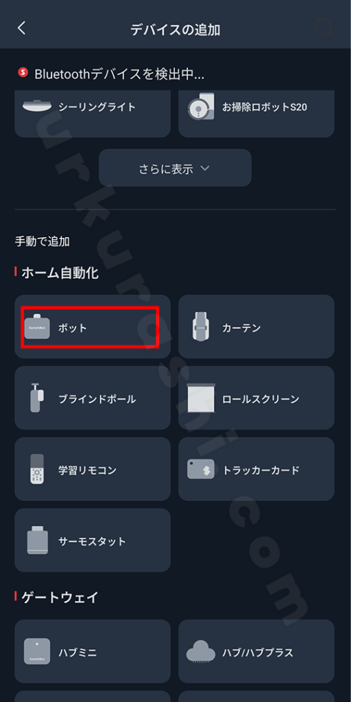 デバイス一覧の「ホーム自動化」カテゴリから「ボット」を選びます。