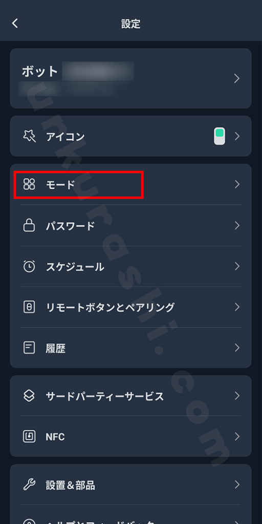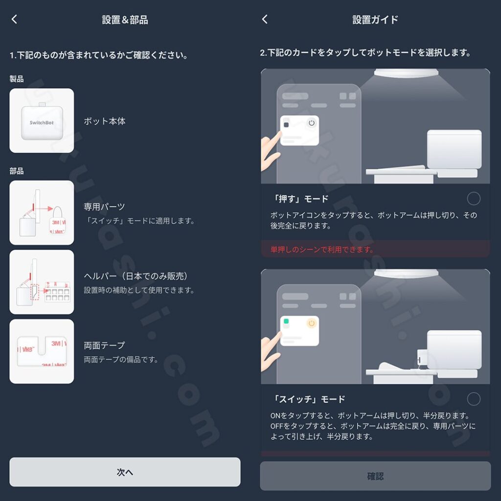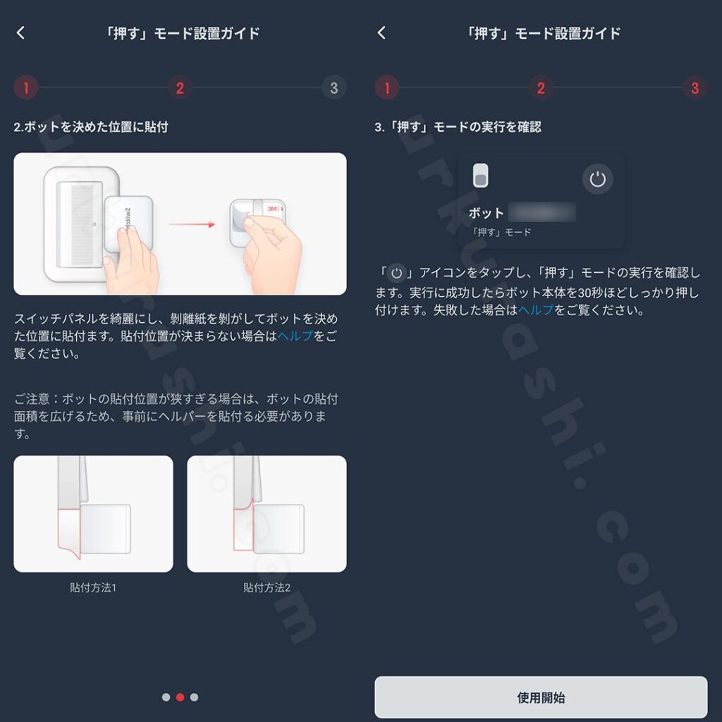 SwitchBotアプリを使用して、ボットを使用可能な状態にします。手順は以下の通りです。