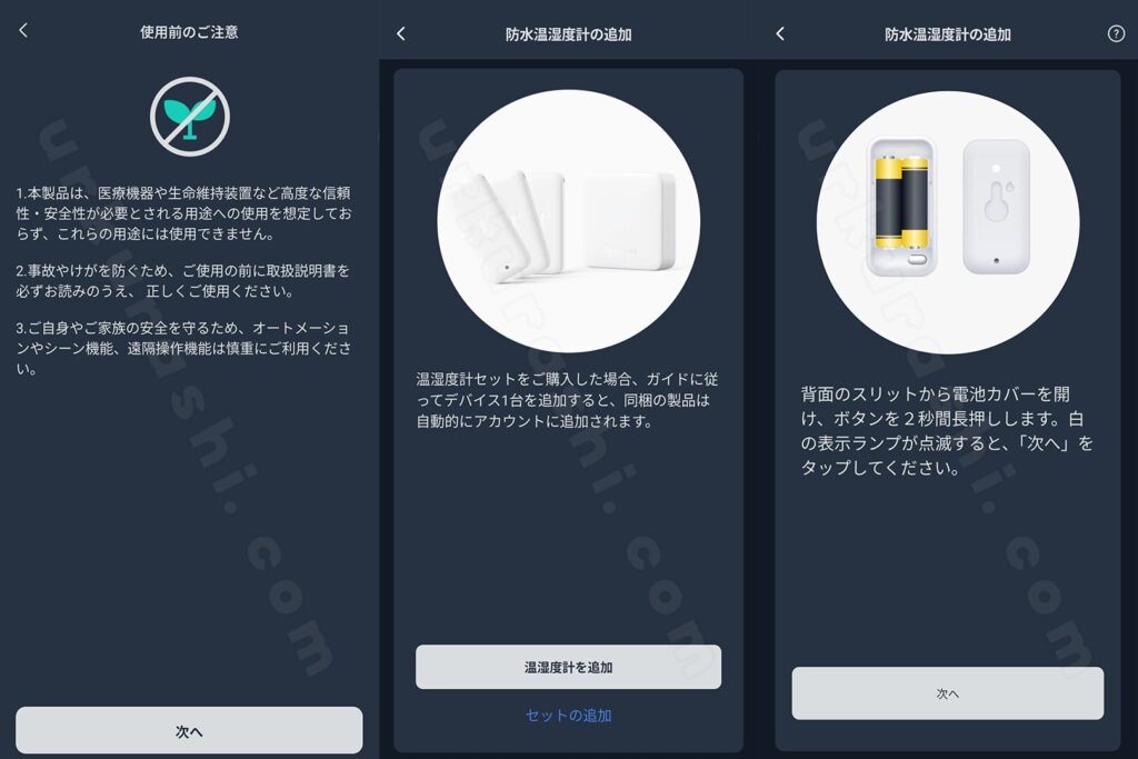SwitchBotアプリを使用して、防水温湿度計をスマートフォンと連携させます。手順は以下の通りです。