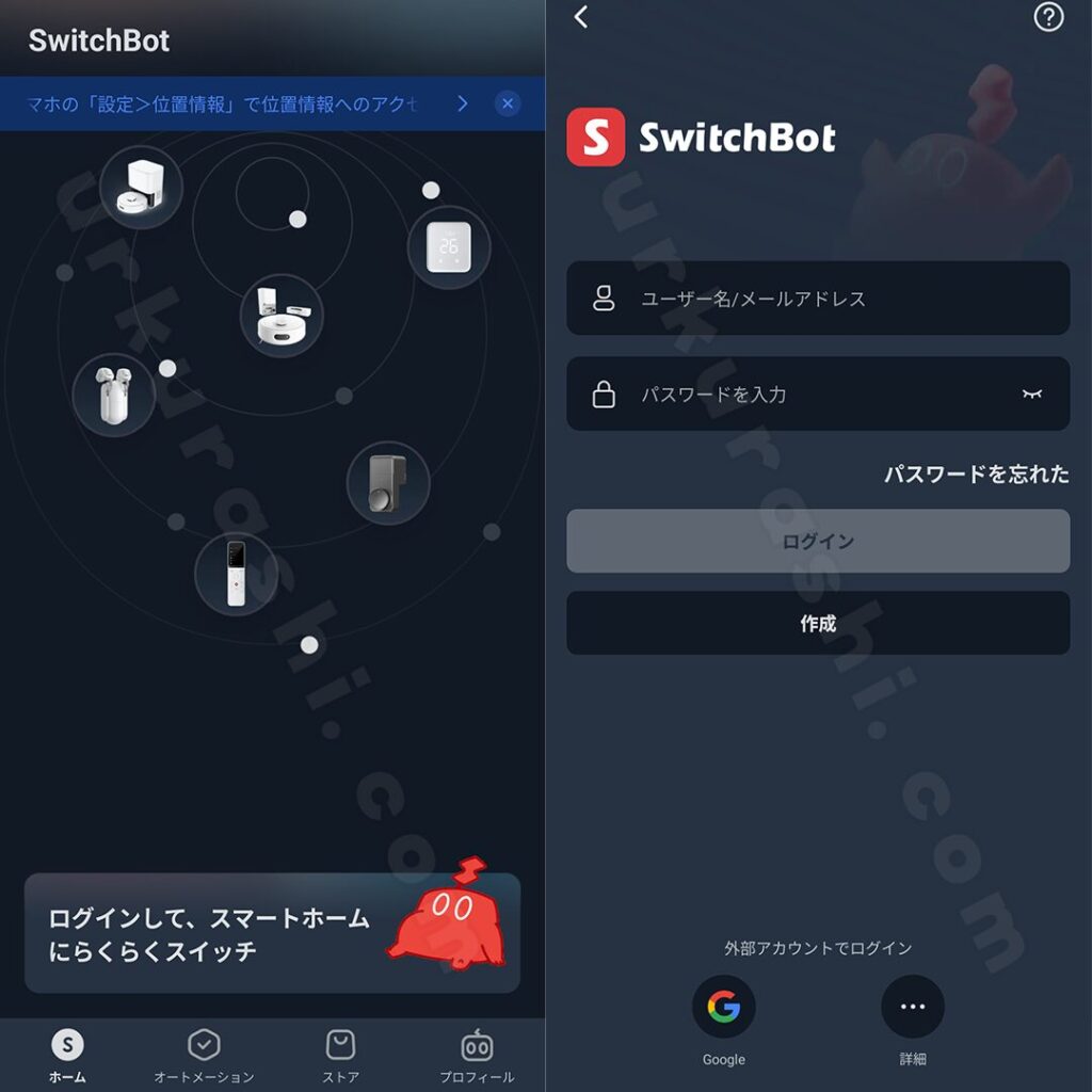 SwitchBotアプリを利用するにはアカウントが必要です。