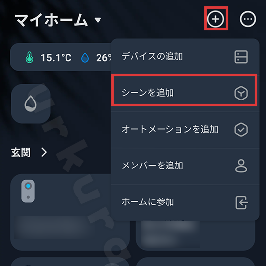 「シーン」とは、複数の機器操作を一括で行う機能です。毎回個別に操作する手間を省けます。