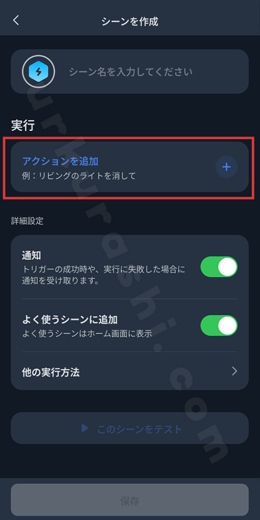 このシーンを実行するだけで、家中の照明をワンタップでまとめて消灯できます。