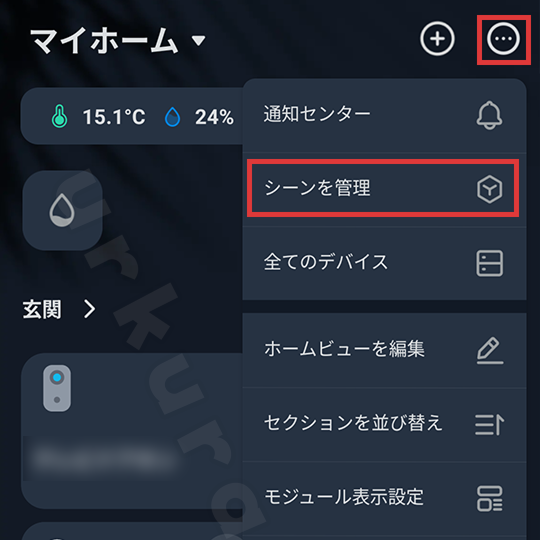 作成したシーンは、右上のメニューアイコン内「シーンの管理」から編集や削除が可能です。
