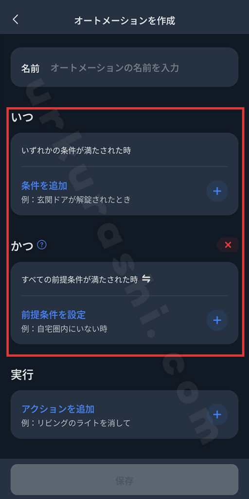 「いつ」の条件が満たされた際、加えて「かつ」の条件が全て満たされている場合のみ起動します。