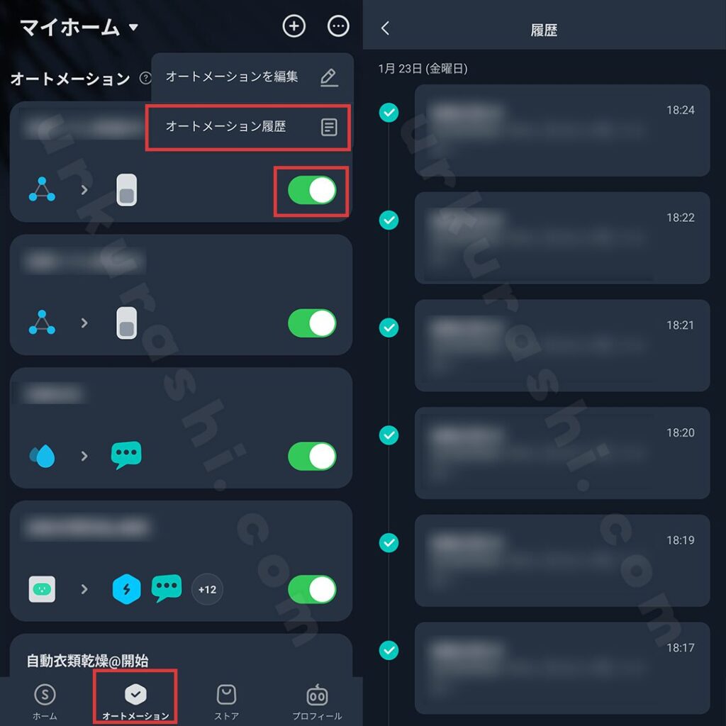 - オートメーションの有効/無効切り替え