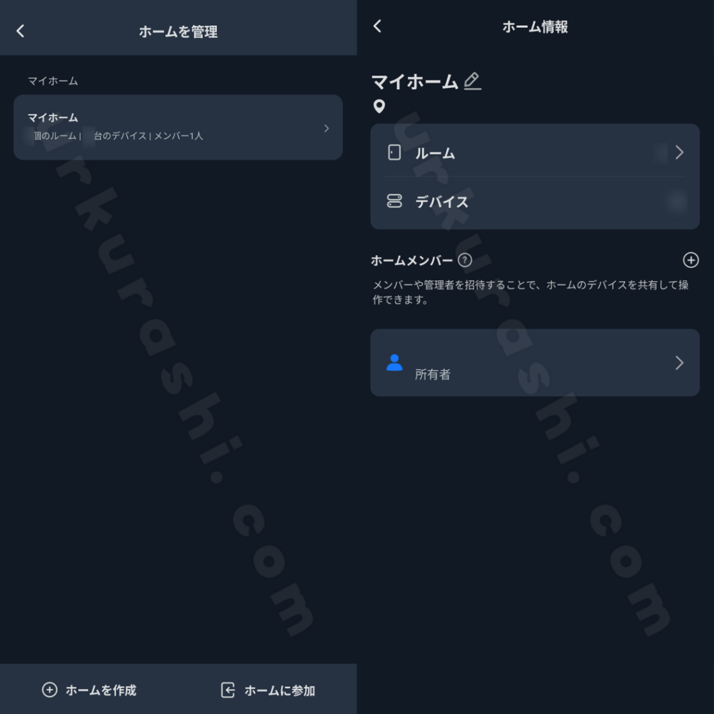 自宅や職場など、場所ごとに「ホーム」を作成して機器を管理できます。