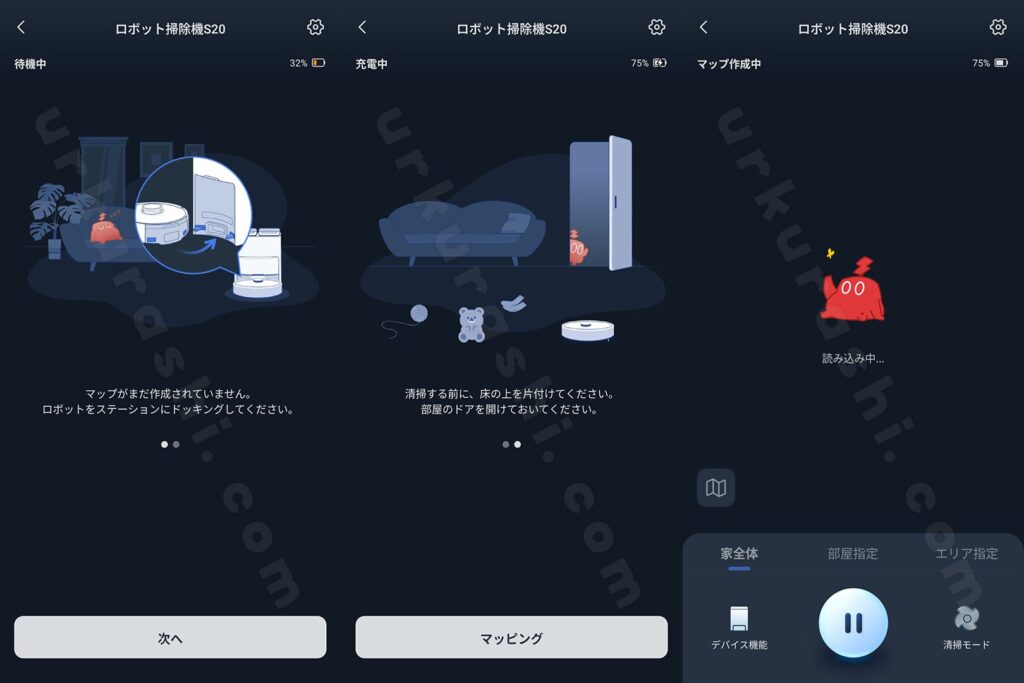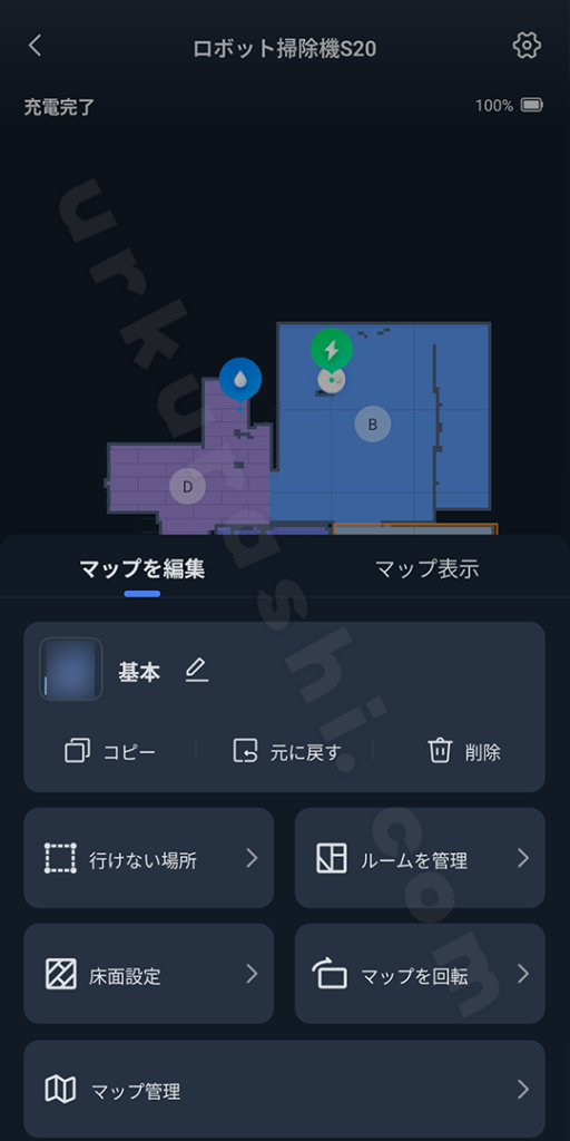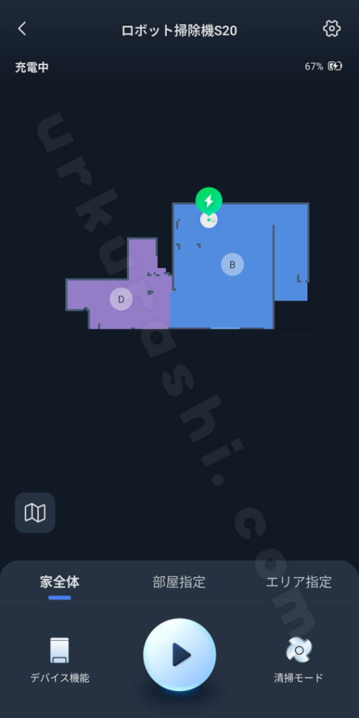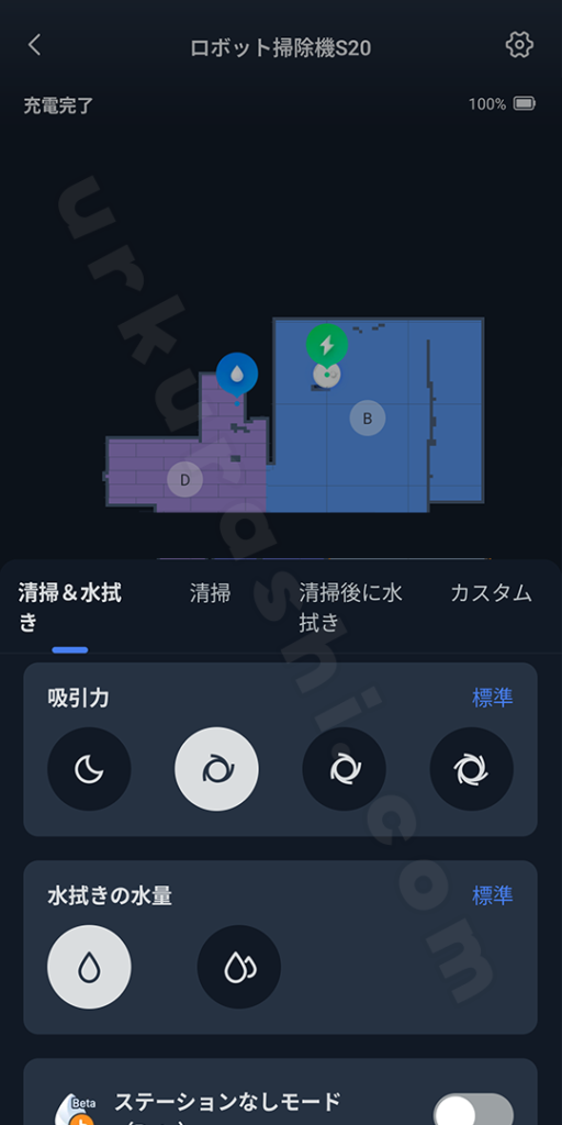 また家の一部だけに清掃場所を限定したり、清掃時の設定(吸引力や水量)を指定できます。