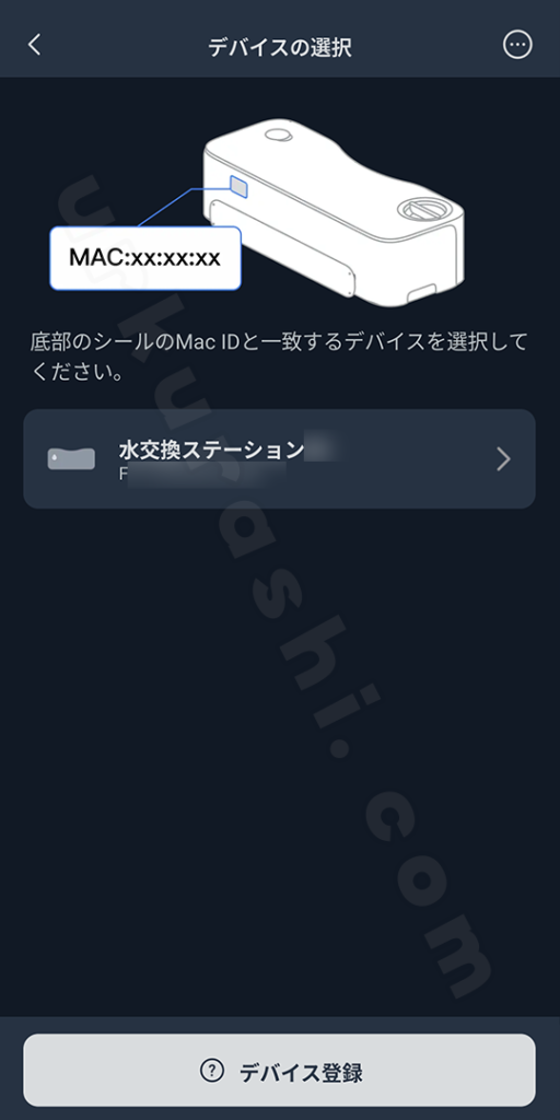 水交換ステーション側面のボタンを6秒以上長押しします。ペアリングに成功すると音声ガイドが流れます。