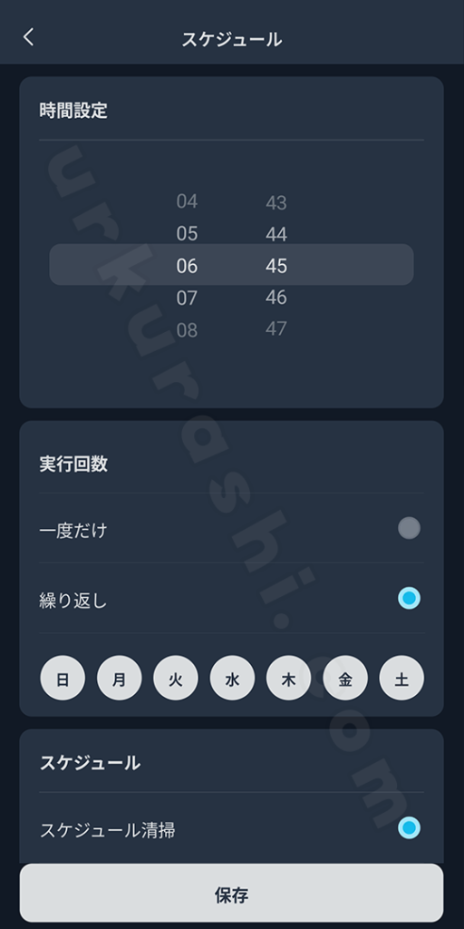 清掃場所ごとに設定を変更したり、オートメーションとして組み込んで他のセンサー類でその部屋にいないことを確認したうえで清掃を開始したり、一週間単位で繰り返しの清掃スケジュールを組んだりすることができます。