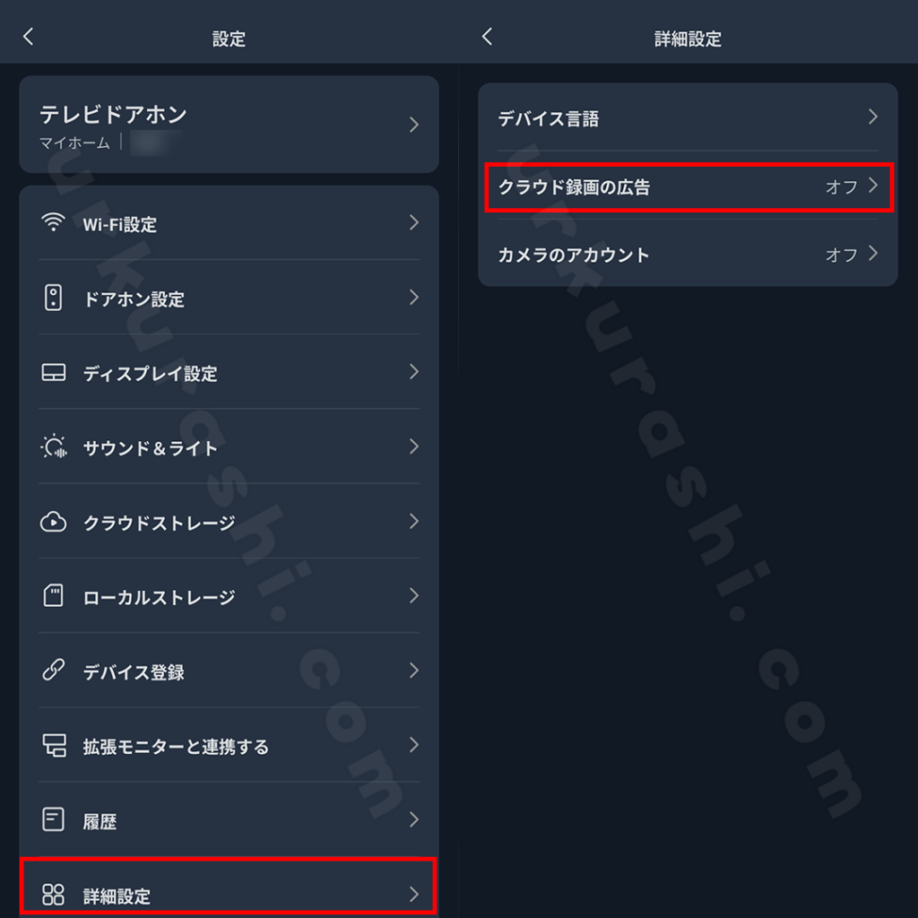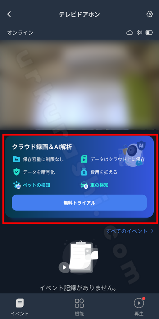 スマートテレビドアホンをアプリに追加するとデフォルトでクラウドサービスの広告が表示されています。
