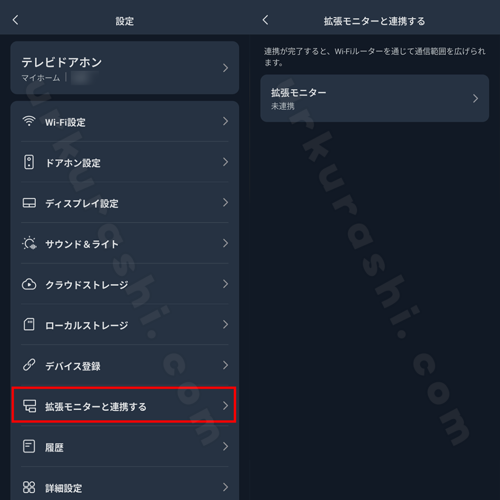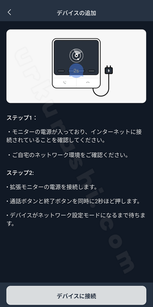 拡張モニターの追加はデバイスの追加からではなくスマートテレビドアホンの設定から行います。