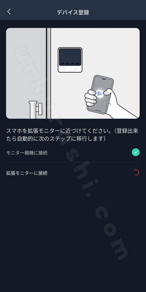 拡張モニターの「通話ボタン」と「終了ボタン」を同時に2秒以上長押しし、ネットワーク設定モードになるまで待ち、接続します。