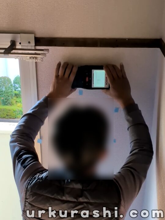 壁に対して垂直に穴をあけられるよう、まずはアンカーを設置します。