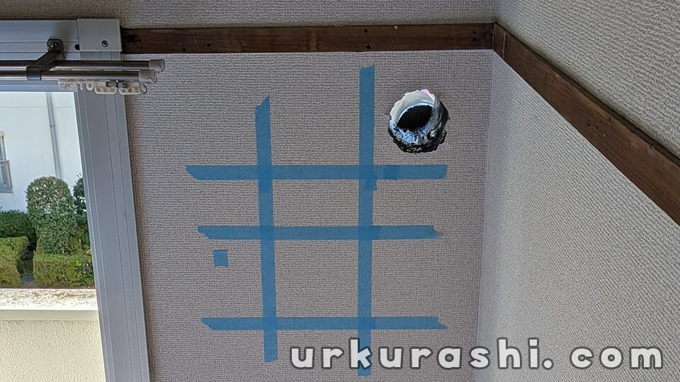 穴あけはバルコニー側から行います。