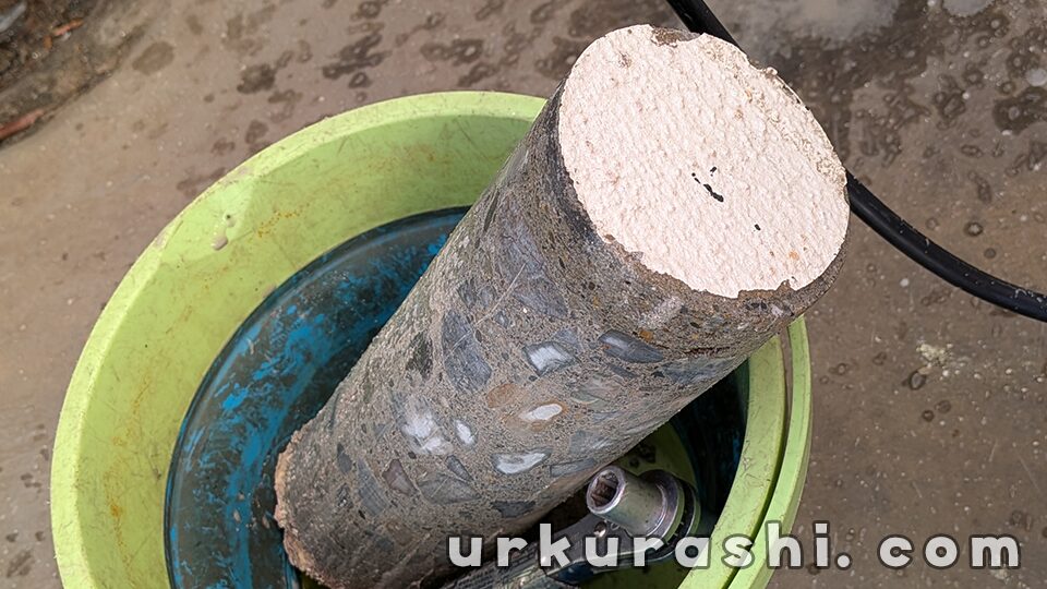 穴あけ用の大口径のドリルを使用してコンクリートに穴をあけていきます。