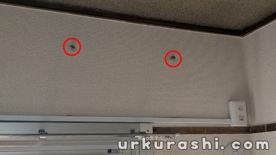 壁に打ち込まれたこのボルトを利用して、エアコンの室内機を設置・固定することになります。