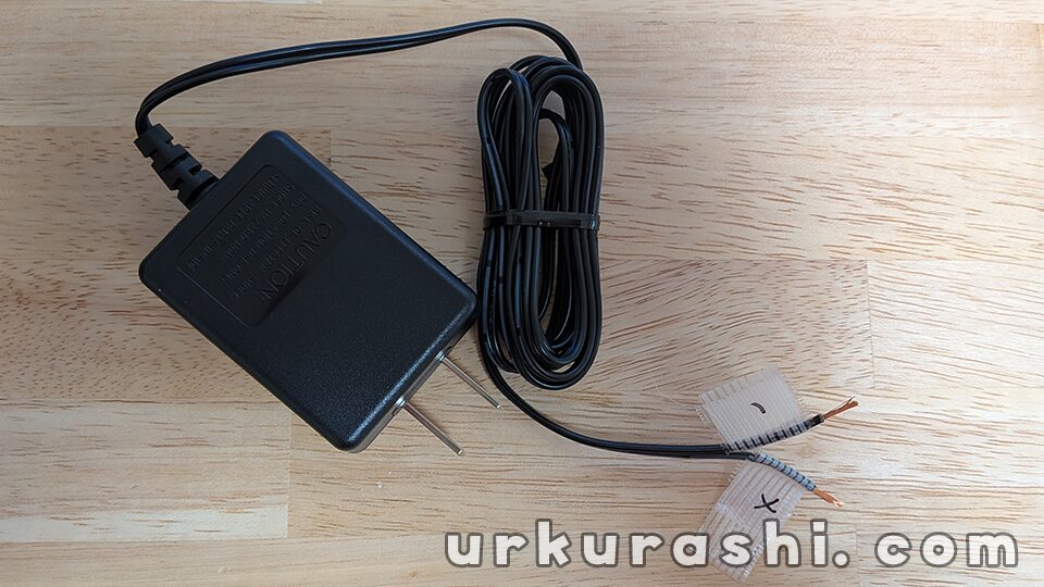 ACアダプター側電線のプラス側、マイナス側が電線の何色と接続したかをそれぞれしっかり記録しておきましょう。