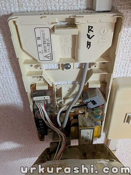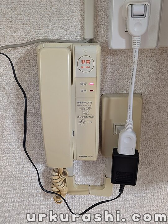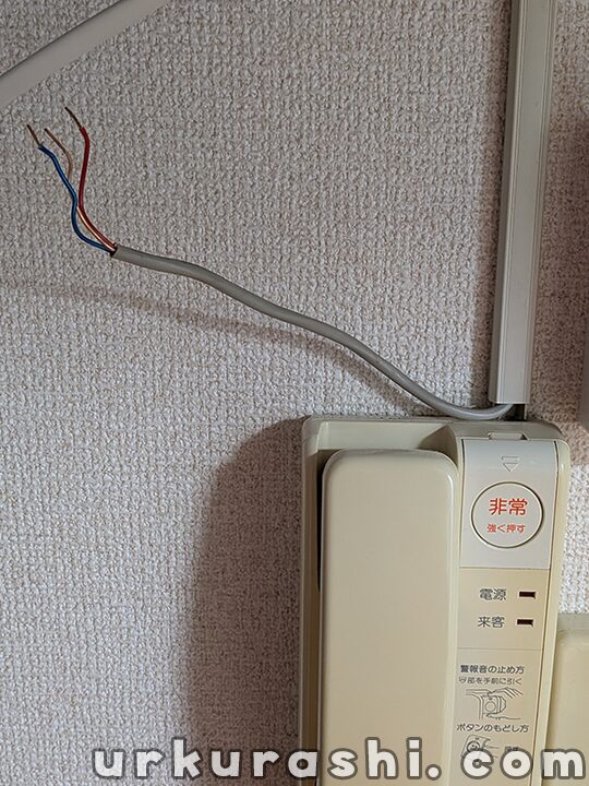 一次側の配線の工事ができないため、既設インターホンの親機を取り外すことはできませんが、別の家電の裏に隠れてしまうのでそのまま置いておきます。