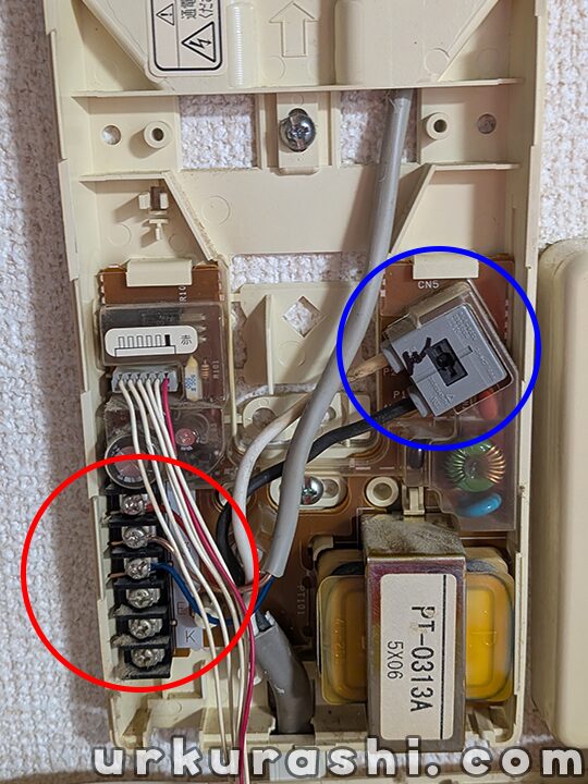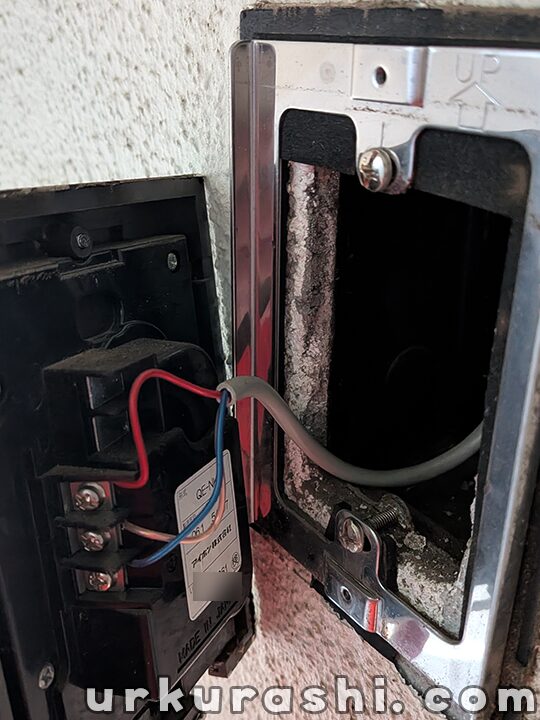 今回既設のインターホンはコンセントで接続されているのではなく、分電盤から直接接続されている形式でした。