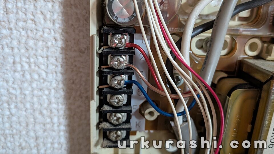 上3つの端子に接続されている電線が子機へ向かう電線ですので取り外しましょう。