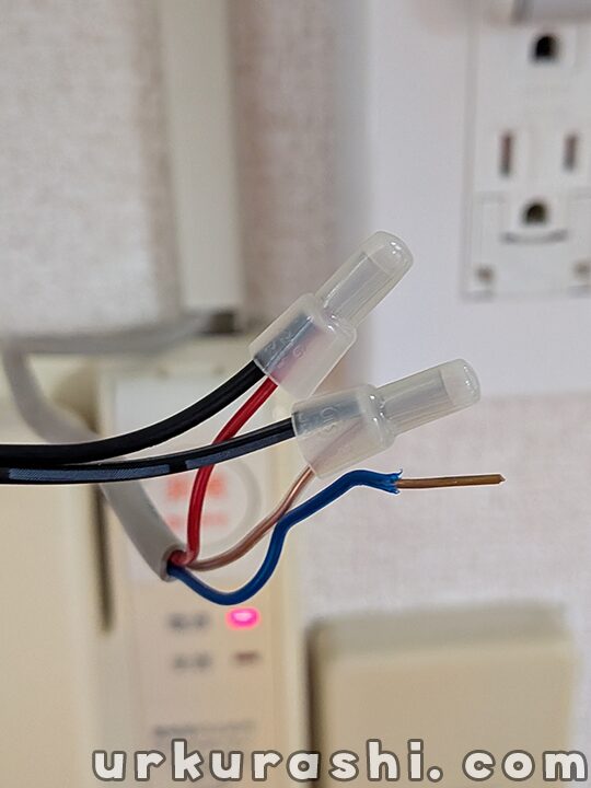 今回はSwitchBotの配線説明書におけるプラス側を銅色、マイナス側を赤色の電線に接続しました。