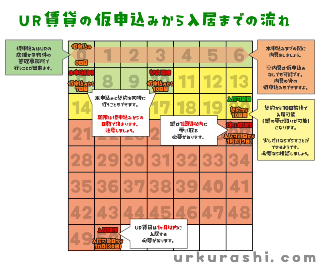 次の記事ではURの仮申込み手続きから内見までについてご説明します。