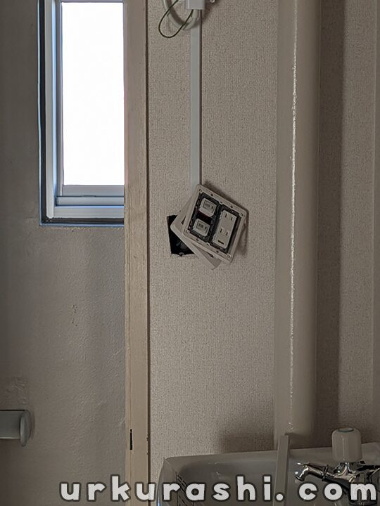 トイレと洗面所の間の木造壁に、新たにコンセントが設置されます。